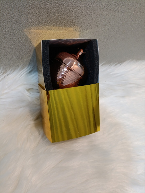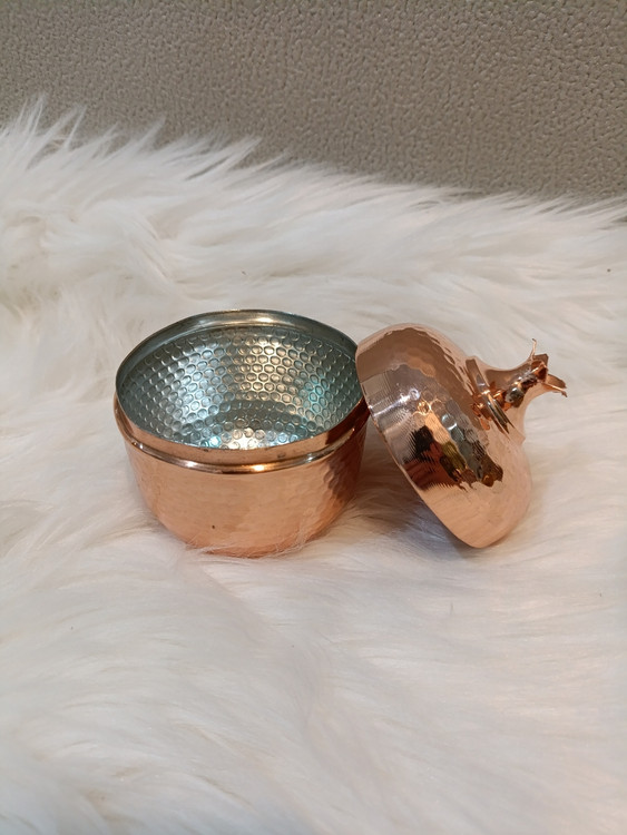 باکس: رنگ طلایی با فوم کاری داخل/ قندان: روکش داخل قلع، روکش بیرون مس نانو شده و رنگ ثابت