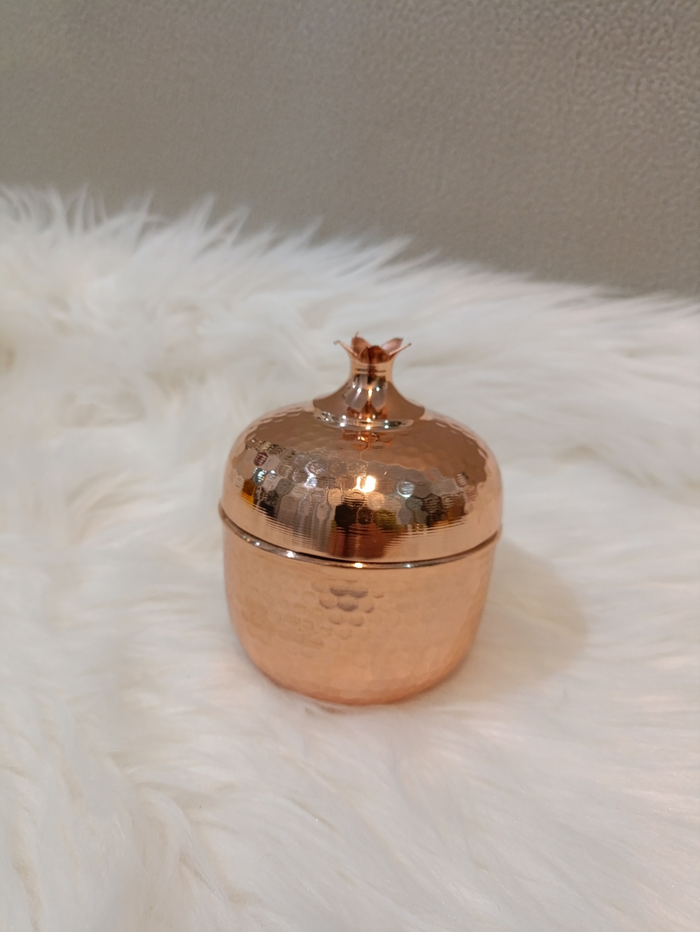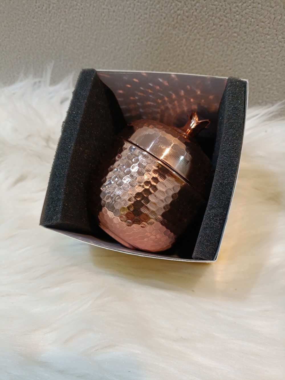 باکس کادویی ویژه شب یلدا مدل MZ121-YB مناسب هدایای سازمانی و دوستانه حاوی قندان مسی انار دست ساز زنجان
