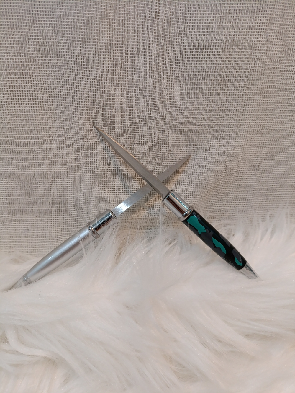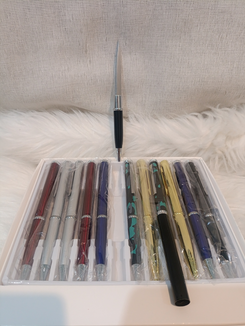اندازه: طول خودکار 14 سانتی متر/ طول تیغه 6 سانتی متر/ قطر خودکار 1 سانتی متر/ پهنای تیغه 0.5 سانتی متر
