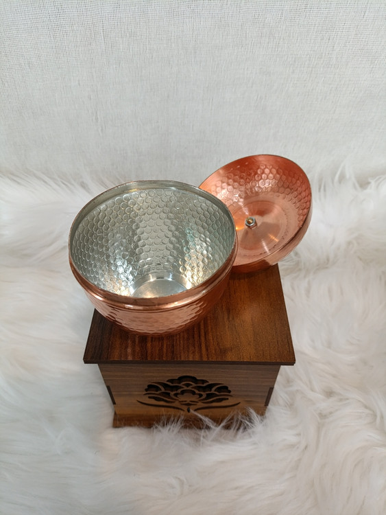 رنگ باکس آنتیک طلایی و فندقی/ رنگ قندان مس خالص با قلع کاری داخل و نانو کاری بیرون