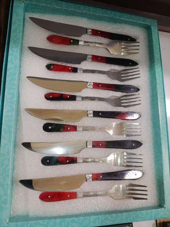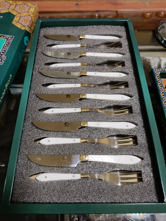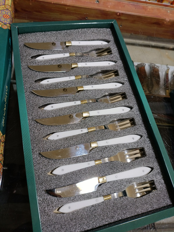 سرویس شش نفره کارد و چنگال میوه خوری کد MZ139-FFK از جنس استیل ضد زنگ بوده که مجهز به دسته کائوچویی و ضد آب است و هنر دست صنعتگران زنجان می باشد. این سرویس کاملا شیک و برازنده مشکل پسندان بوده که می تواند در مهمانی های خصوصی و رسمی و نیز در محیط منزل و محل کار کاملا کارایی داشته باشد. شکل خلص و سنتی این سرویس زیبایی خاصی به میز پذیرایی داده و همچنین بسیار محکم و با دوام می باشد.