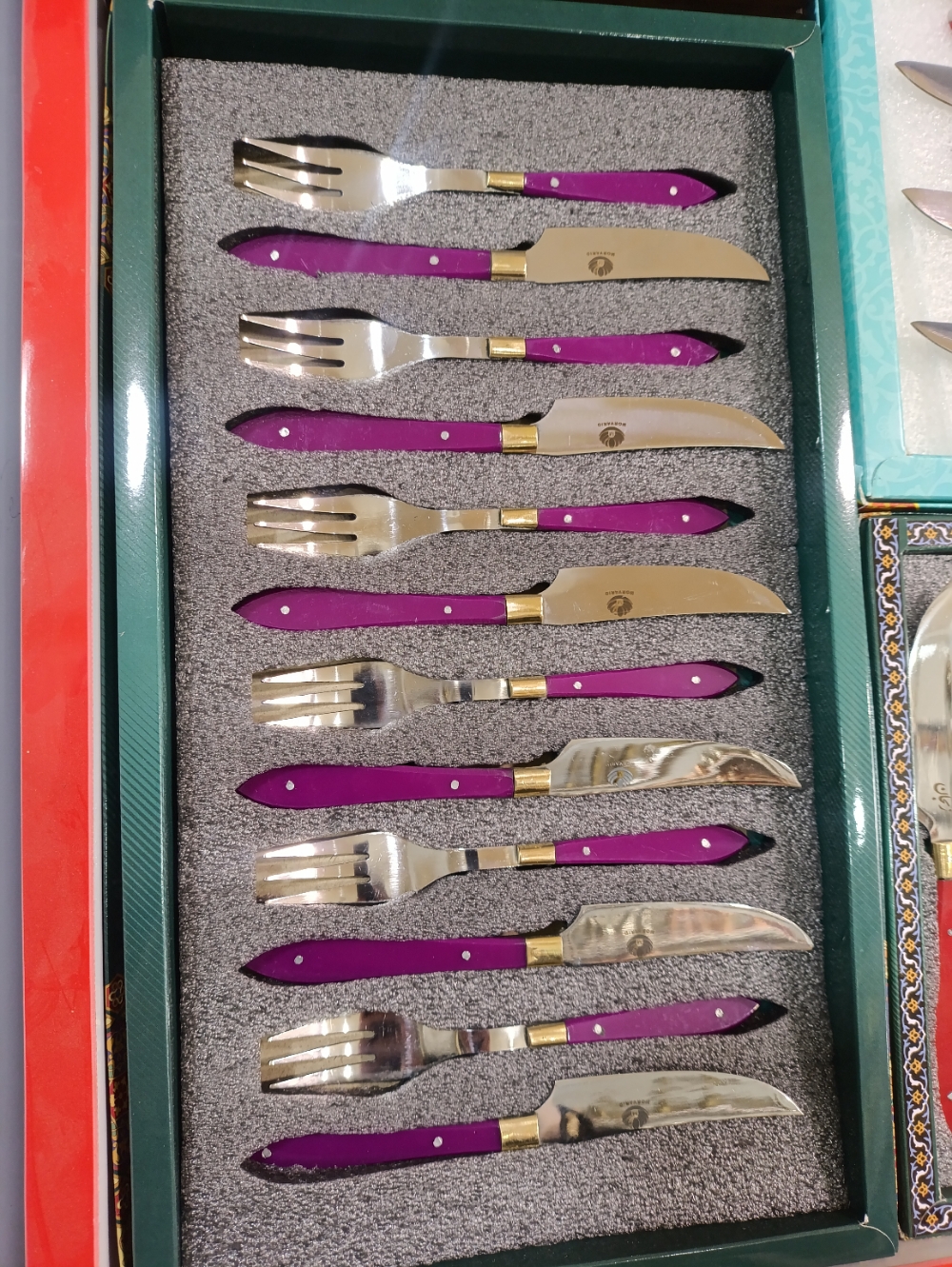 دسته کارد و چنگال: پلکسی در رنگ بندی مختلف/ تیغه: استیل اصل ضد زنگ و ضد آب