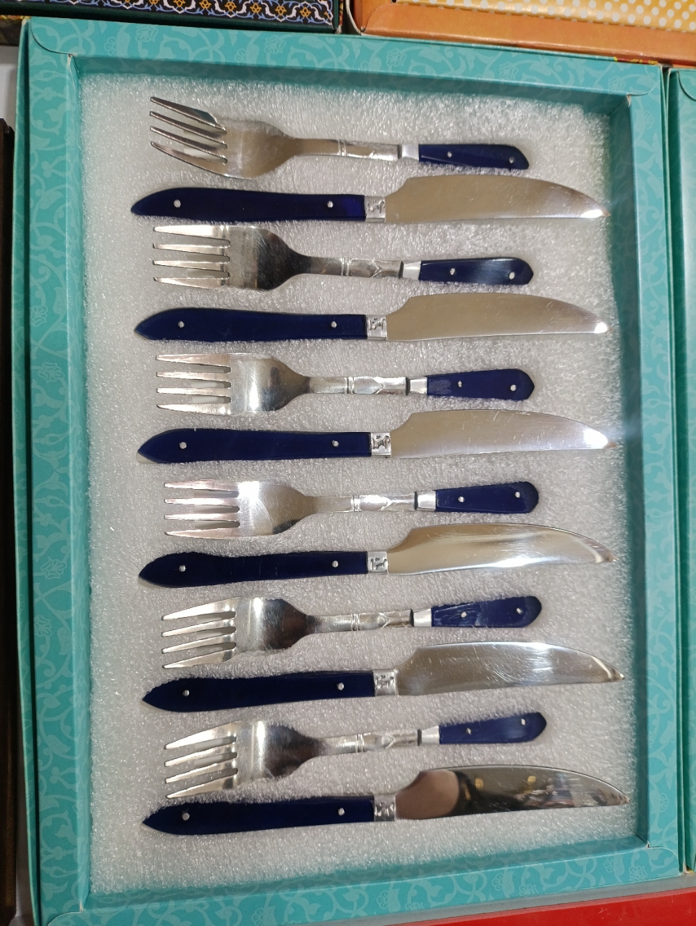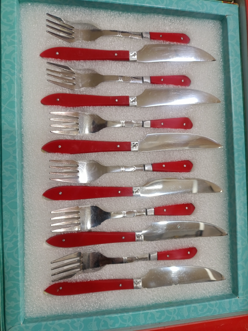 سرویس شش نفره کارد و چنگال میوه خوری کد MZ139-FFK از جنس استیل ضد زنگ بوده که مجهز به دسته کائوچویی و ضد آب است و هنر دست صنعتگران زنجان می باشد. این سرویس کاملا شیک و برازنده مشکل پسندان بوده که می تواند در مهمانی های خصوصی و رسمی و نیز در محیط منزل و محل کار کاملا کارایی داشته باشد. شکل خلص و سنتی این سرویس زیبایی خاصی به میز پذیرایی داده و همچنین بسیار محکم و با دوام می باشد.