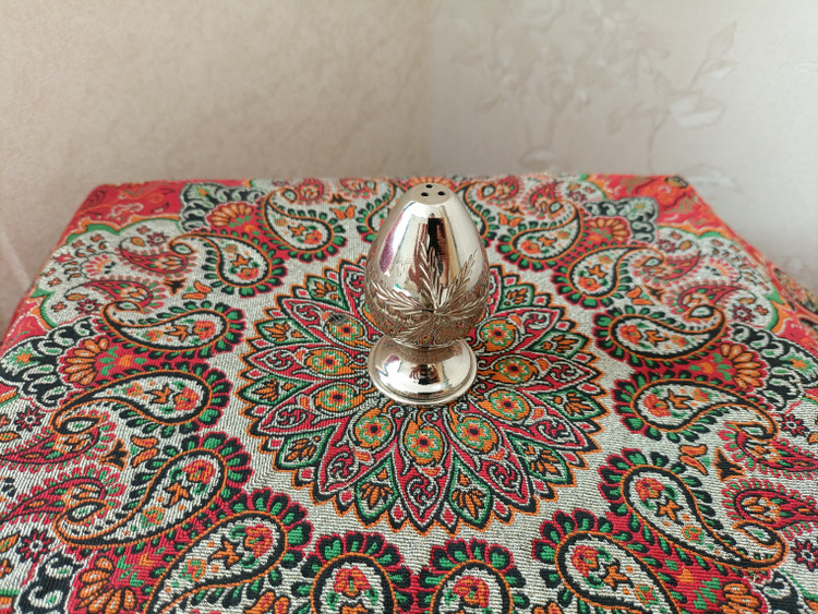 نمکدان مسی با طراحی لیزری طرح الماس نشان دستساز زنجان با قلعکاری داخل و روکش کروم
