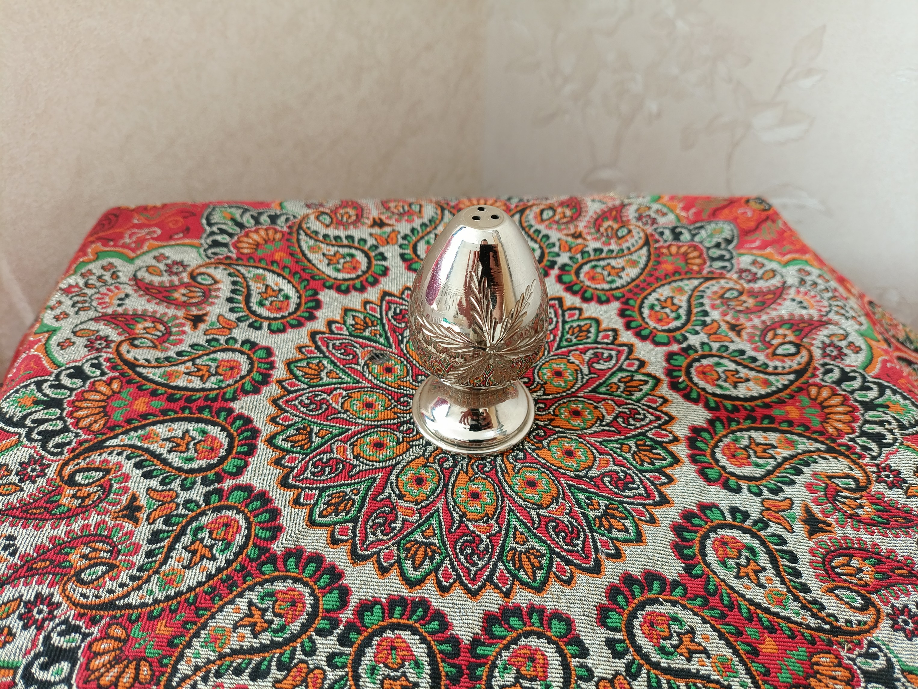 نمکدان مسی با طراحی لیزری طرح الماس نشان دستساز زنجان با قلعکاری داخل و روکش کروم