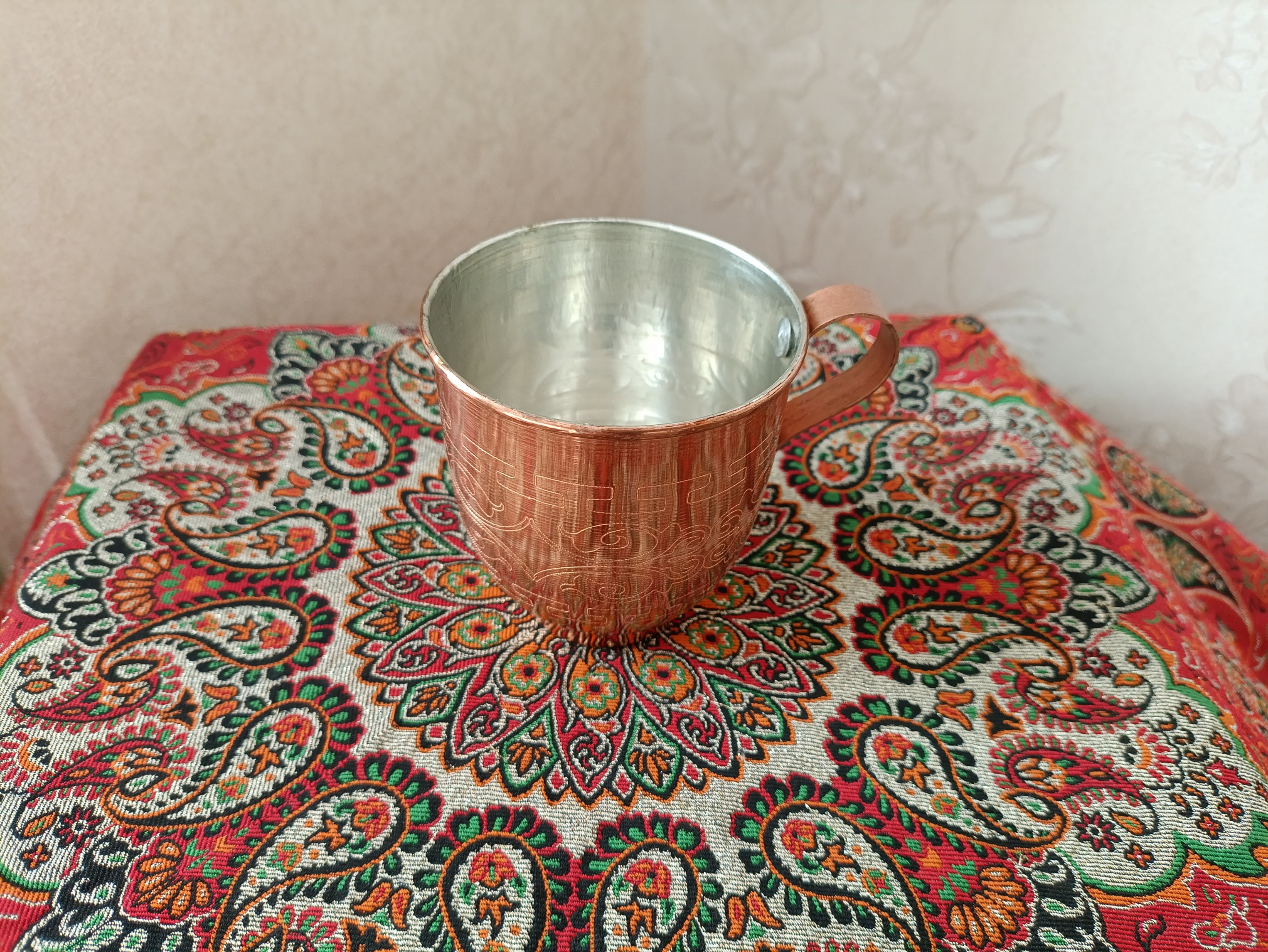 فنجان مسی طرحدار مدل MZ20 با طراحی لیزری، یک وسیله کاربردی خاص و سنتی برای منزل، محل کار، باشگاه و مسافرت است. این فنجان از مس با کیفیت ساخته شده و درون آن قلع اندود شده تا برای مصرف مواد خوراکی کاملا ایمن باشد.