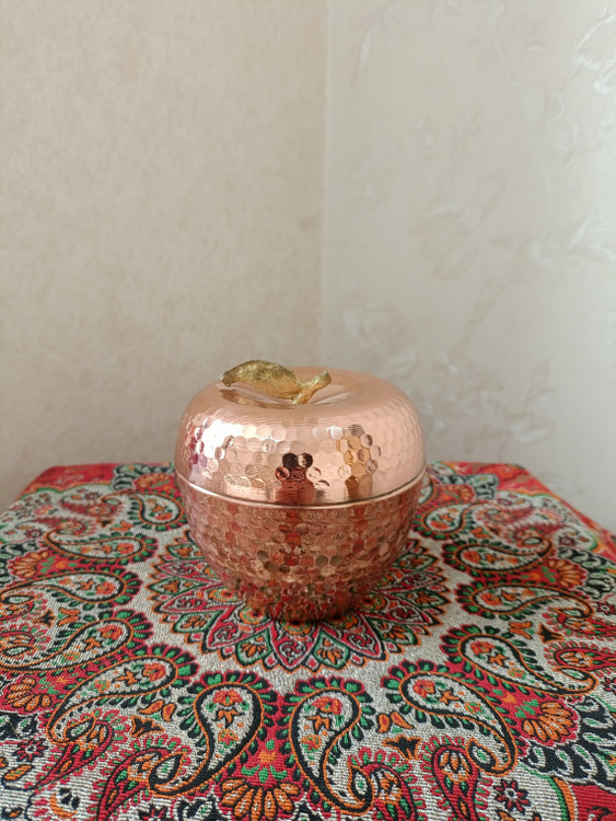 قندان مسی طرح سیب مسگران زنجان، یک محصول لوکس و متفاوت از مجموعه ظروف مسی است که با طراحی هنری و فرم سیب، جلوهای شیک و اصیل به میز پذیرایی میبخشد. این قندان مسی دستساز از مس باکیفیت ساخته شده و با پرداخت دقیق، ظاهری براق و جذاب دارد. طراحی خاص سیب باعث شده این محصول علاوه بر کاربری روزمره، گزینهای مناسب برای دکور و نمایش در ویترین نیز باشد.