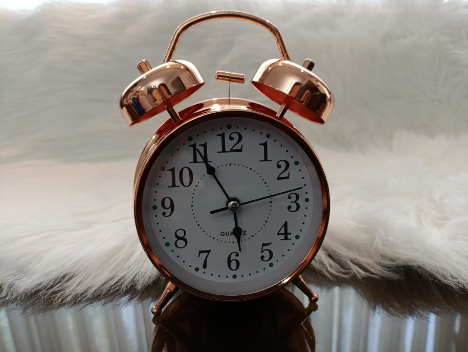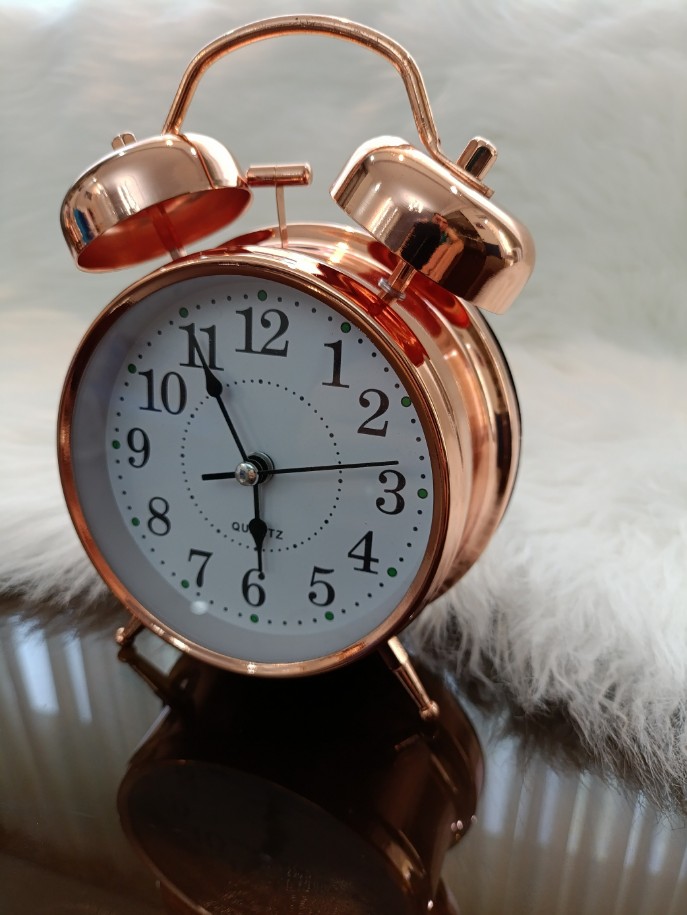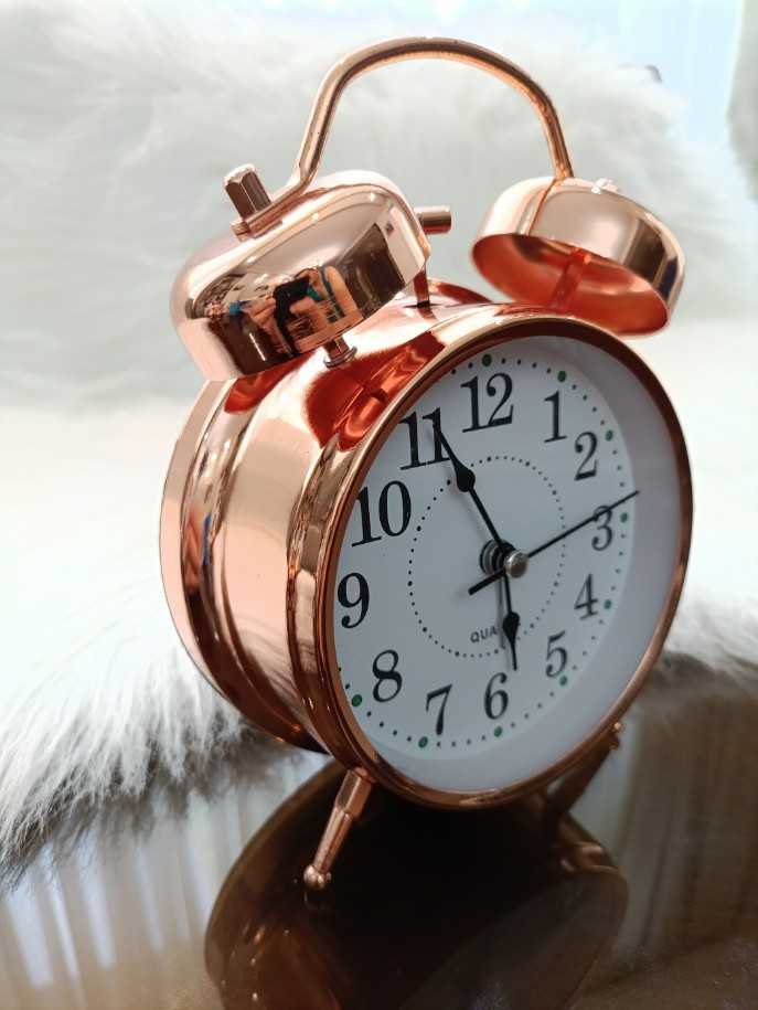 ساعت رومیزی زنگ‌دار باطری خور چراغ دار ساخته شده از مس خالص مجهز به آلارم خواب مناسب برای اتاق خواب