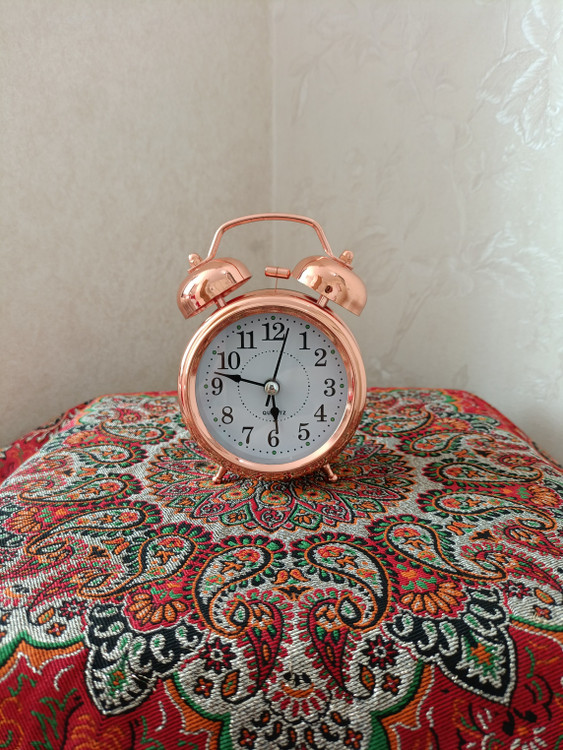 ساعت رومیزی زنگ‌دار باطری خور ساخته شده از مس خالص چراغ دار مجهز به آلارم خواب مناسب برای اتاق خواب