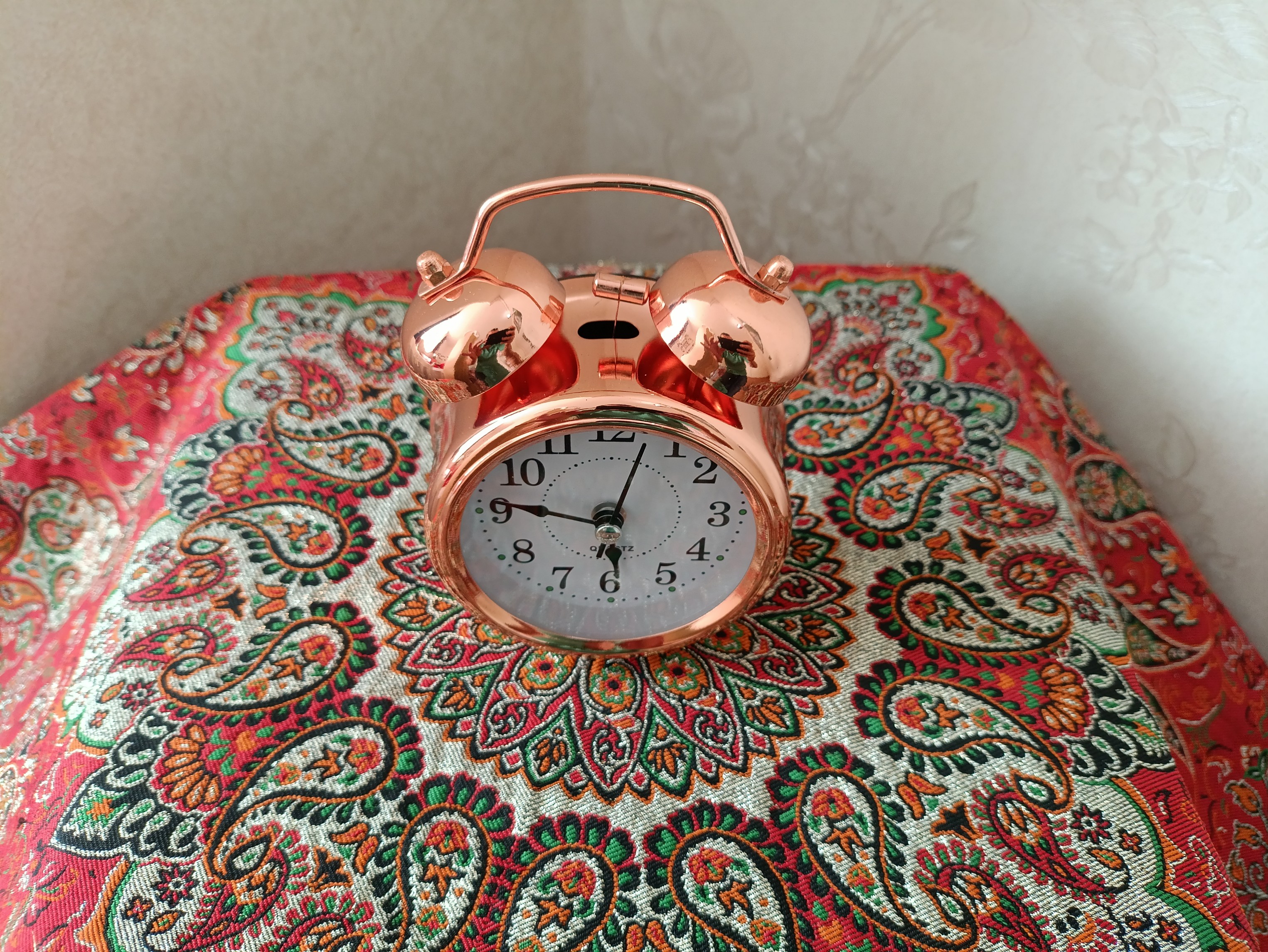 ساعت رومیزی زنگ‌دار باطری خور ساخته شده از مس خالص چراغ دار مجهز به آلارم خواب مناسب برای اتاق خواب