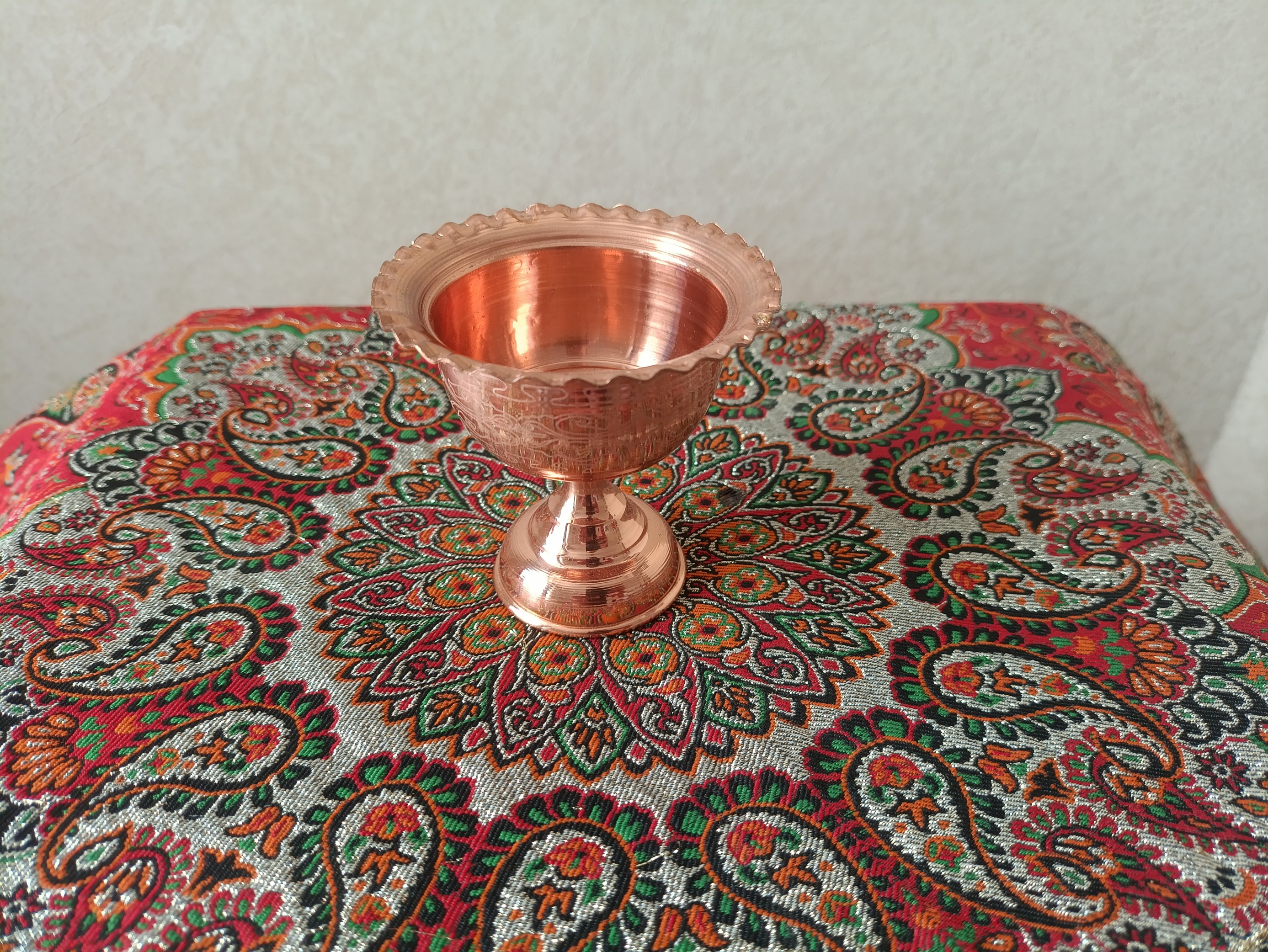 جام مسی با طراحی لیزری مناسب برای استفاده در سفره عقد و سفره هفت سین دست ساز زنجان با روکش نانو
