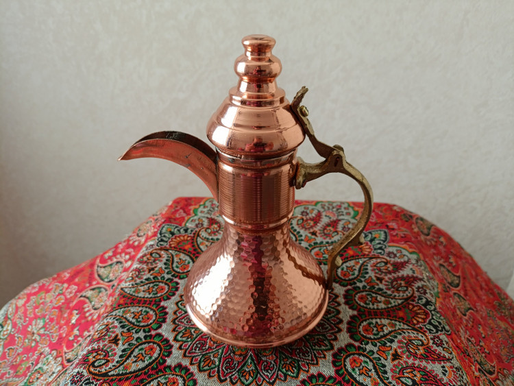 دله عربی مسی مدل MZ60-HAB با طراحی چکشی و حجم حدودی 400 میلی لیتر، یک وسیله کاربردی خاص و سنتی برای منزل، کافه و رستوران است. این وسیله از مس با کیفیت ساخته شده و درون آن قلع اندود شده تا برای مصرف مواد خوراکی کاملا ایمن باشد. این محصول مناسب برای نوشیدن انواع نوشیدنی های گرم بوده و تجربه ای لذت بخش برای صرف قهوه و چای مخصوصا در فصول سرد سال می باشد. ظاهر سنتی دله عربی و مجهز بودن آن به دسته برنجی که باعت شکیل تر شدن آن شده است، باعث شده به یک اکسسوری خاص برای محیط های سنتی نیز تبدیل شود.
