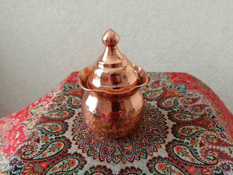 جا ادویه مسی چکشی با گنجایش ۰/۵ لیتر دستساز زنجان با قلع کاری داخل و روکش نانو