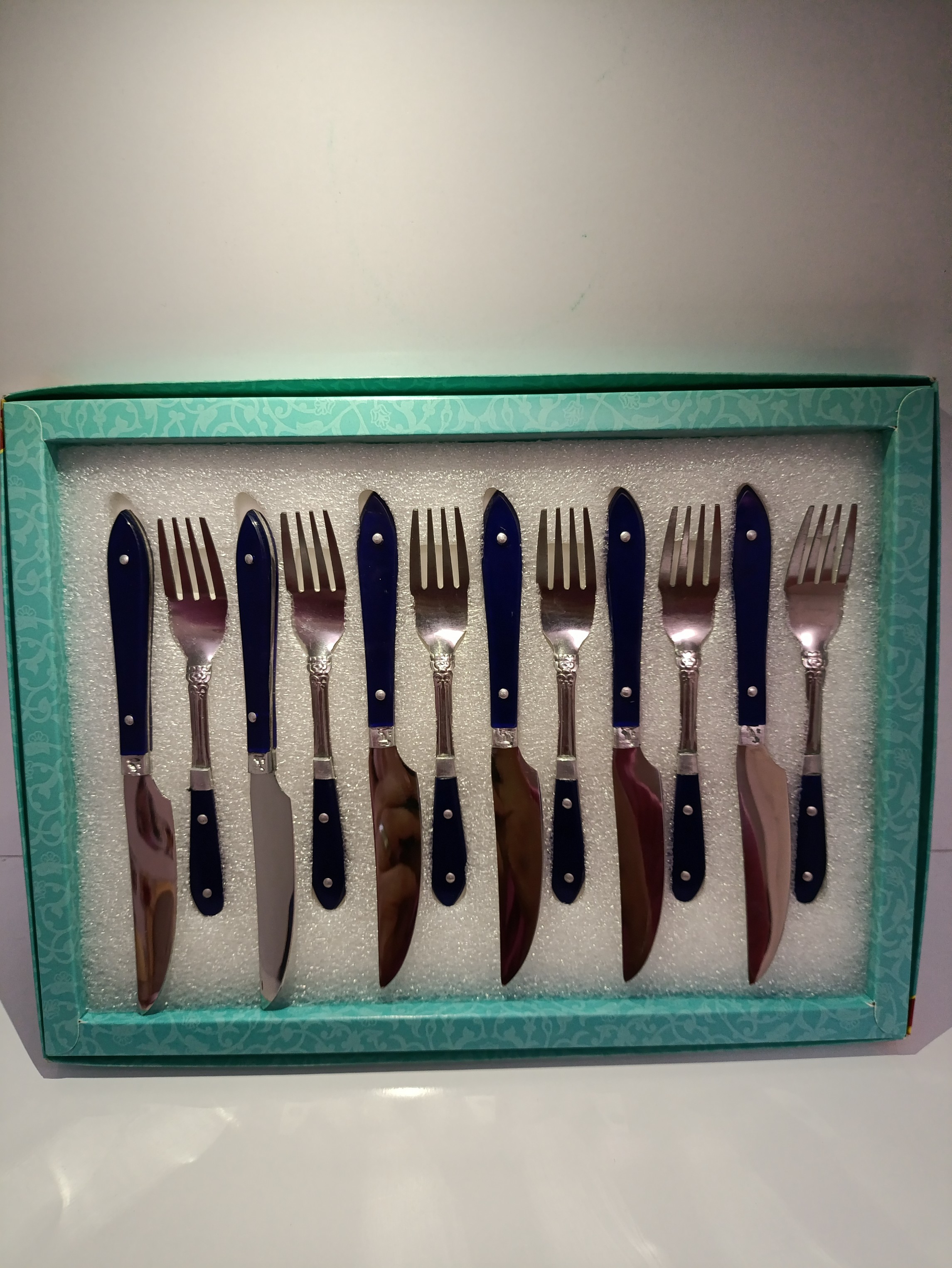 اندازه: طول کارد ۱۷ سانتی متر/ طول دسته کارد ۹ سانتی متر/ پهنای کارد ۱/۵ سانتی متر....... طول چنگال ۱۴ سانتی متر/ طول دسته چنگال ۶ سانتی متر/ پهنای چنگال ۲ سانتی متر