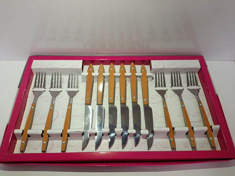 سرویس شش نفره کارد و چنگال میوه خوری تمام استیل با دسته کائوچو ضد آب دست ساز زنجان