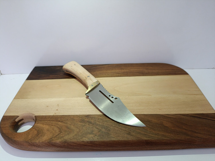 طول ۲۱ سانتی متر/ طول دسته ۱۰ سانتی متر/ پهنای تیغه تیزی ۴ سانتی متر