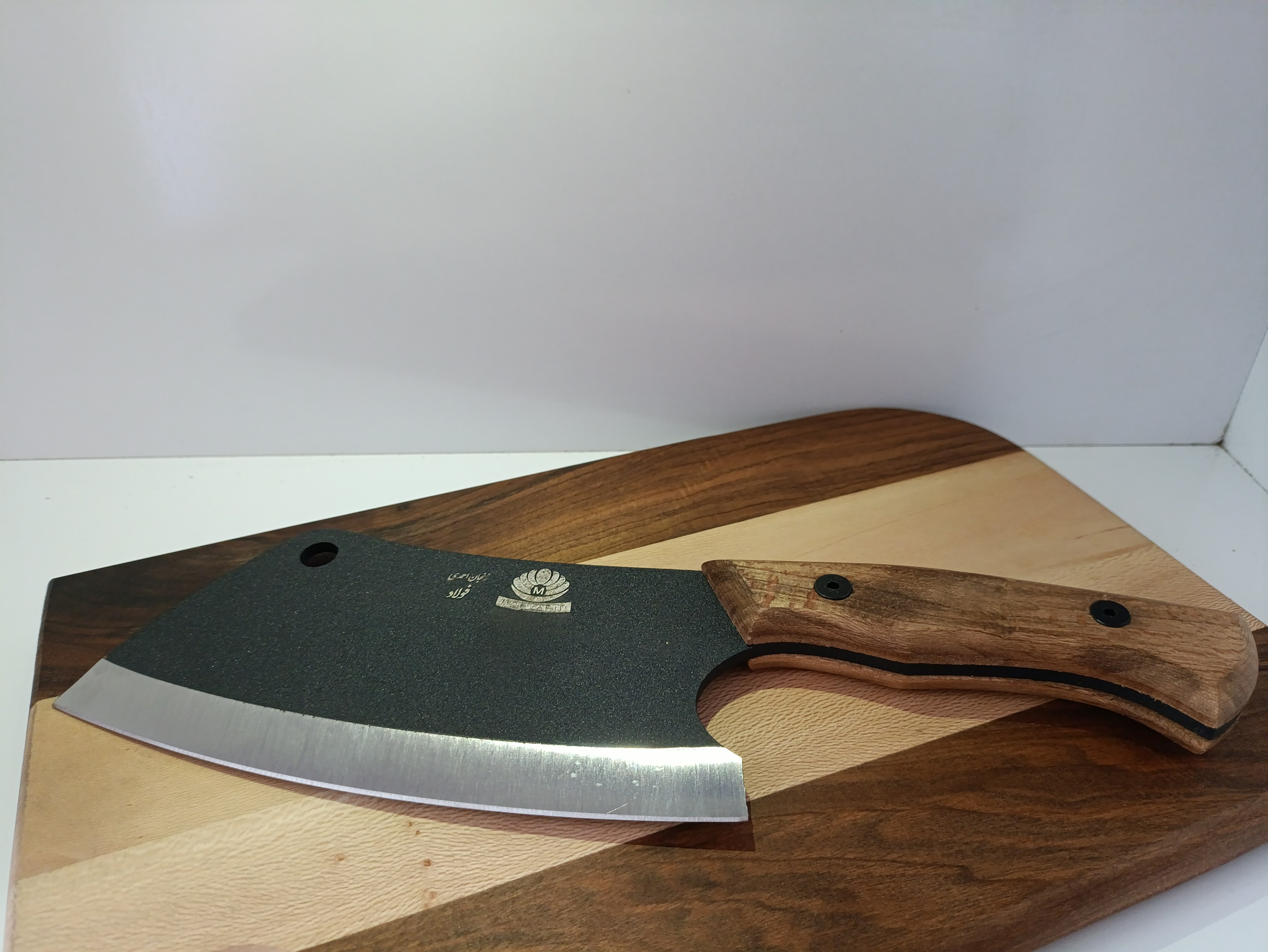 اندازه: طول 31 سانتی متر/ طول دسته ۱۴ سانتی متر/ پهنای تیغه ساطور ۸ سانتی متر